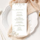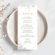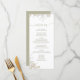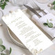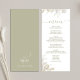 This design features a wedding, menu card, elegant, calligraphy, script, sage green, greenery, classic, simple meal course, with a floral design.