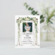 Elegant Wedding Canopy Watercolor Green Floral Change The Date Wedding Postponement New Wedding Date Card includes white peonies . The wood wedding canopy arch includes botanical greenery. Couple Photo.