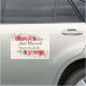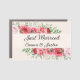 Wedding custom name just married car magnet is shown in a lovely pink and red roses print and has black text.