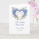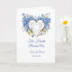 This wedding card is shown with a blue hydrangeas diamond hearts image. Text reads " Two Hearts Become One".