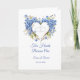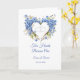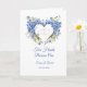 This wedding card is shown with a blue hydrangeas heart image. Text reads " Two Hearts Become One".
