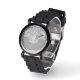 I had two concerns when ordering this watch - one that the watchband didn't look that glittery and two that the dial would be too large. Neither was a problem at all. The watch band is nice and glittery for a touch of bling. As to the size, I have small bones so I tend to like smaller looking accessories and I am quite comfortable with this. Neither too large or too small. The outside edge to edge on the dial is 1 1/4" the inside image is 1 inch.