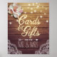 Wedding Gift Table / Cards and Gifts Wedding Sign Poster Templates - Faux Gold Foil Script Elegant Floral and String Lights with Lace Decorations on Rustic Wood Background.