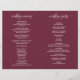 This is the foldable wedding ceremony program card, in elegance script in Burgundy color themed.