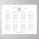 A modern design for your guests to find their seats with a motif of boho wedding chairs at the top and curved typography around it for the header with eight tables for up to 80 guests. Easily personalize with your guests' names and you can change the table numbers to your own words if preferred for your theme. If you wish to change font styles and colors you can do so via the customize further option.