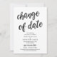 This is a Postponed Wedding Announcement card, with card title, change of date, in Black script font, modern rustic design themed.