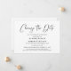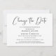 Minimal modern wedding postponement black and white announcement. "Change the Date" is written in a stylish script and you can easily personalize with the wedding postponement details.