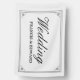 Wedding flag with bride and groom names. Classic script and block text in black on a white background and within a grey double border.