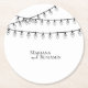 Add a refined finishing touch to your celebration with this elegant minimalist wedding coaster, featuring delicate string lights and timeless typography. The clean, modern layout highlights your names in a graceful combination of script and serif fonts, creating a sophisticated yet inviting design.
