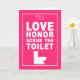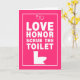 My take on the 'keep calm' trend. Love, honor and scrub the toilet is the advice for the newlyweds. Let the bride and groom know that you're thinking about them and wishing them well with this funny wedding congratulations card. Original art/design and verse © Penny Cork.