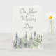 This wedding congratulations card for the happy couple has a tranquil woodland scene with a simple watercolor style illustration of tall evergreen trees. The mountain pines are in soothing shades of green and gray. Coordinating green lettering spells out your choice of message. The message on the front and the inside of this card is ready for you to customize it with your own greeting or create a unique personalized card for any occasion.