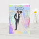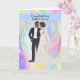 Wedding congratulations for a black couple with an illustrated bride and groom on a soft colored designer background. Thanks to Design Cuts for some of the elements in the design. The words on the front of the card are permanent, but the inside can be changed to your liking.