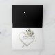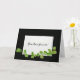 White note card with green ivy and romantic message on black for newlywed congratulations.