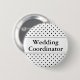 Wedding coordinator / planner pinback button for weddings, wedding receptions and rehearsals. Black polka dot design.