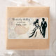 Help guests remember or learn names of others at your wedding with a custom label name tag featuring bride and groom art on the right and a subtle abstract background. Personalize the text fields, remove any text or use the Edit Design tool to select a font color, size, and style your prefer. The shipping label size and design allows room for the attendee's name to be added at the reception, wedding party dinner or other wedding related event.