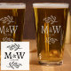 Wedding Couple Monogram Date Elegant Botanical Pint Glass