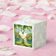 Create a romantic wedding favor box featuring your monograms! Trees provide a special backdrop for this favor box with a majestic tree in the center. Customize the front of this green wedding favor box with your special date and desired couple monogram. Use the template to create your own wedding monogram favor box.
