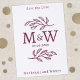 Simple wedding couple monogram initials with botanical line art leaf details for a beautiful and unique modern minimalist letterpress wedding Save the Date announcement. Change the names and date to personalize.