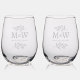 Wedding Couple Monogram Names Elegant Botanical Stemless Wine Glass
