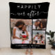 Unique wedding photo collage blanket for the perfect keepsake of your special day. "Happily Ever After" is written across the top in a mix of simple white typography and a trendy white script with swashes. Personalize with three photos, your first names and your wedding date.