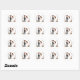 Includes 20 small stickers on one sheet. Adorable cartoon sticker of a smiling bride and groom standing in front of a floral wedding arch, perfect for wedding celebration decor.
