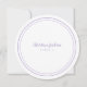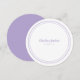 Fully customizable elegant wedding round place cards featuring a minimalist design in soft lavender and white. Personalize each card with your guest’s name and table number in matching lavender script and typography on a crisp white background. The opposite side is solid lavender for a polished, cohesive look. Customize the template with your own wedding details and order each card individually for every guest at your celebration. Perfect for weddings, rehearsal dinners, and formal events. Custom color requests welcome.