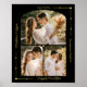 Celebrate and memorialize your wedding with this beautiful photo collage wall poster. The pretty layout includes space for one horizontal and two vertical photos, with each photograph having an elegant arched edge. The design also has decorative lines with hearts in the corners and room for your custom text. The background color is black and the rest of the design is gold. Add the bride and groom's names, wedding date, venue and a personal phrase (or any text you like) via the easy template fields. Your photographs will automatically fill the design spaces. Choose your own poster size. What you see on screen is what will print. To rearrange elements to better fit a different poster shape, use the design tool.