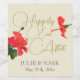 Wedding Custom Wine Bottle Label with Bright Red Hibiscus Flower