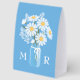 Wedding Daisies Mason Jar Monogram Initial Blue Paper Table Tent