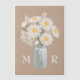 The simplicity of a bouquet of white daisies in a mason jar creates an elegant yet minimalistic wedding design. Customizable initials.