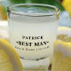 Personalized shot glass - a lovely wedding keepsake gift for your wedding party. Stylish, minimalist design in modern, black typography. The name template is set up ready for you to customize with your best man's name, the bride and groom's name and the wedding date.