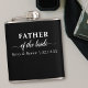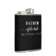 Personalized Hip Flask for the Father of the Bride. This minimalist typography design is lettered in elegant script and modern typography. The name template is set up ready for you to add the bride and groom's names and the wedding date. This design has a black and white color palette. Please browse our store for alternative colors and coordinating keepsake gifts for your wedding party.