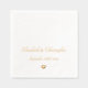 Create your own custom, personalized, elegant typography / calligraphy / script / font, bride groom / couple names, wedding / anniversary date, heart, your choice of foil embossed onto your choice of white or ecru colored, coined or standard style, food contact safe, party celebration cocktail paper napkins that look good tucked in the collar or draped over your lap. Simply type in the bride and groom's or wife and husband's names, and the wedding date, to customize. Elegant, classy paper napkins, perfect for wedding reception, anniversary celebrations, engagement party, and more.