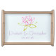 Customize this wedding keepsake serving tray with the bride and grooms name and their wedding date. An outline of a lotus flower / water lily. Petals outlined in pink and the leaves outlined in green.