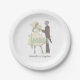 These wedding paper plates show a groom presenting a bouquet of flowers to his bride. Across the image is written in mint green "forever". At the bottom is your custom text in gray. Cute, with a retro feel! *Clip art used in this design is copyrighted by Encore Software, Inc., which permits use to its licensors. All rights reserved.