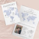 Modern and Elegant World Map Invitation Wedding Destination, like passport. Blue lavender watercolor world map