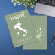 Modern and Elegant World Map Invitation Wedding Destination with sage green background, like passport. Italy wedding, or any other destination - just move the heart