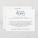 Brush Calligraphy Details Card (Dusty Blue): This casual brush script wedding details insert card coordinates perfectly with our calligraphy invitation suites. The design color is set in dusty blue / blue-gray, but you can change the color of the design by changing your background color. **HOW TO CHANGE YOUR DESIGN COLOR** 1) Click the "Personalize" Button. 2) Click the "ClICK TO CUSTOMIZE FURTHER" link at the bottom. Then you will have the option to change your "BACKGROUND COLOR" to your wedding color. Don't forget to change your text color to match your design.