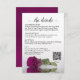 This beautiful wedding enclosure card is designed to give you extra space for whatever information your guests may need, including RSVP, registry, reception, travel, accommodations, etc. as well as a customizable QR code directing your guests to your website for more information. The card features a gorgeous design with a single magenta, berry, or cassis purple colored rose and a lacy script calligraphy title reading "the details."