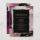 Wedding Details | Let your out of town guests know about room reservations and details, easy to personalize with your own wedding details. Bold faux metallic textured brush strokes in an abstract pattern shades of pearl white, plum, cassis, blush color palette with black inset accented with double gold frame with gold fleck spatters - this is a bold design and will most definitely garner attention. Pairs well with your black and blush, cassis, berry or plum wedding theme. Looks great on all paper types but really shines on the semi gloss paper choice. Design created for TheBarefootBride™ by © WhimsicalArtwork™. This is part of a wedding stationery suite collection with matching wedding accessories also baby shower and other occasion stationery. Feel free to contact us if you need assistance.