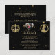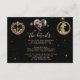 Romantic and unique black and gold celestial details card featuring your personal Zodiac Signs. Gold lettering to set it off and a photo in a heart on the back for the special couple. For any design questions or additional customization and / or matching items, just send a chat or an email to charmdesignstudio@rcn.com and we'll be delighted to assist. *NOTE: you may easily add your own Zodiac signs or ask our studio and we will create a personalized invitation with your specific signs in the same design pattern set as the ones included here.