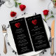 Introducing these Modern Wedding Dinner and Bar Menu Cards, the epitome of style for your special day. With a sleek double-sided design in classic black and white, adorned with Red Roses in the shape of a heart, these cards effortlessly combine modern aesthetics with timeless elegance. Elevate your wedding experience with these chic menus, guiding your guests through a culinary journey that mirrors the sophistication of your celebration. Crafted to perfection, they are a visual delight that complements your wedding decor seamlessly. Make a statement with every detail—order these Modern Menu Cards for a beautiful wedding celebration!