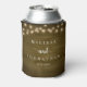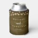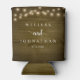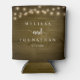 Wedding Dinner and Party, Rustic String Lights, dark brown tan wood background Can Cooler
