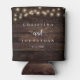 Wedding Dinner and Party, Rustic String Lights, dark wood background Can Cooler