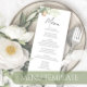 Elevate your wedding reception with our elegant menu cards, featuring sophisticated calligraphy script and minimalist design. Perfect for a refined dinner setting, each card showcases watercolor peach florals and lush botanical greenery, ideal for spring, summer, or fall celebrations. These classic, traditional menu cards add a graceful touch to your table decor, enhancing the beauty of your garden-inspired wedding. Customize to complement your unique theme and delight your guests with every course of the meal.