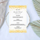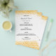 An elegant wedding menu. A stylish white background, decorated with gold confetti. Personalize and add your names, date and the wedding menu.