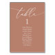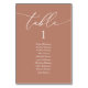 Wedding Dinner Guest Seating Table Chart Card, Modern Classy romantic calligraphy terracotta earthy brown themed.