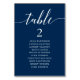 Wedding Dinner Guest Seating Table Chart Card, Modern Classy romantic, navy blue themed
