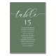 Wedding Dinner Guest Seating Table Chart Card, Modern Romance Sage Green Greenery themed.
