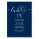 Wedding Dinner Guest Seating Table Chart Card, Modern Romance Navy Blue themed.